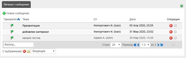 Для использования внутренней почтой после регистрации и входа обратите внимание на меню инструменты справа:
