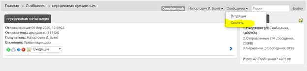 создания сообщения перейдите через меню «Сообщения» к пункту создать: